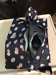 The blue flowered shoe bag is a must have for me. The bag is a decent size. It can accommodate my size 6 shoes. I also placed my daughter’s shoes in the bag which are a size 7 and they fit. But this is my bag and I am not sharing. The zipper on the bag performs well. I travel and this bag is just right to protect my shoes and clothing. The bag is lightweight but durable. The blue coloring with white and pink flowers makes this a stylish bag. The bag has a loop for carrying the bag. The bag folds up small to take along with you. It fits nicely in a suitcase. Placing your shoes in the bag when packing ensures your clothes stay clean. The nylon fabric is waterproof. A bag that is great for storing your special shoes. It’s a multipurpose bag. I found I can use it to place a wet bathing suit in, toiletry, make up, medication, shampoo and so much more. I am very pleased with the style, design and craftsmanship.